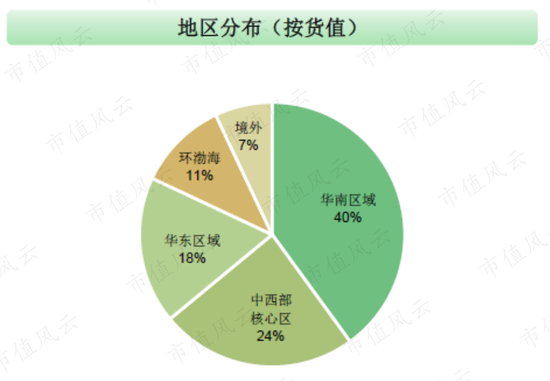 另外,按照地区分类的话,货值占比如下所示。华南区域依旧是公司的战略核心地区,占比最大为40%,其次就是中西部核心区和华东区域,分别占比24%和18%。