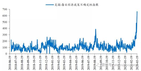 截至2020年3月19日,美国经济政策不确定性指数飙升至663.73,为1985年以来第三高。