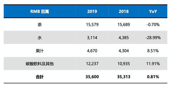 在此背景下,康师傅控股的即饮茶2019年销售额为155.79亿元,同比下滑0.7%,饮用水销售额更是同比下滑28.99%至31.14亿元。