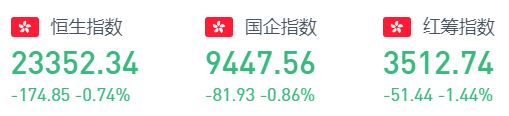 周四恒指跌0.74%,报23352.34点;国企指数涨0.86%,红筹指数涨1.44%。