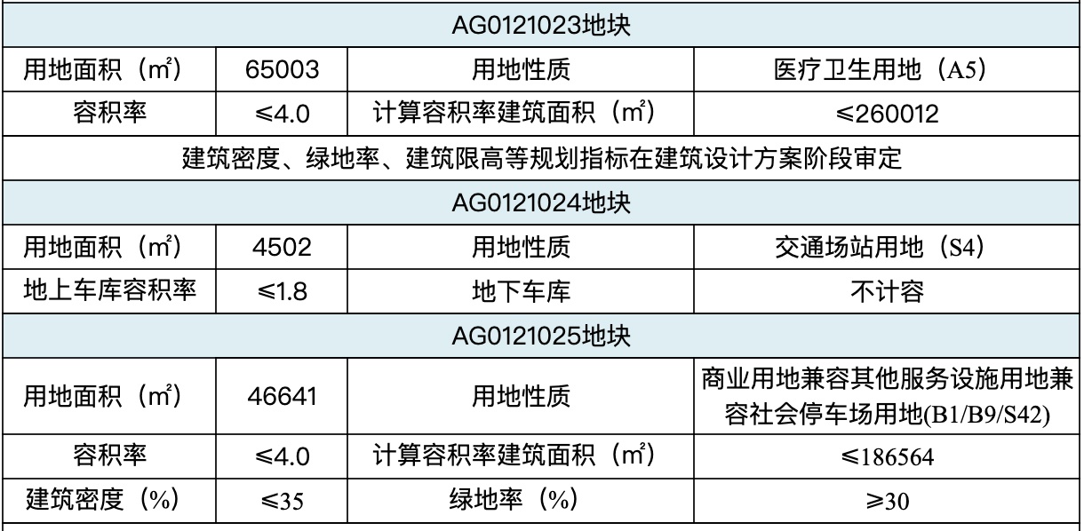 另外,地块要求竞得人需要承诺,该地块用于建设医院和康养项目。该地块医疗卫生用地投资强度不低于1.2万元/平方米(按计容面积计算),商业用地投资强度不低于0.6万元/平方米(按计容面积计算);项目建成后,对医疗卫生用地上建成的物业整体确权并全部自持,物业自持年限与土地出让年限(40年)一致,土地出让年限内不得变更土地用途;对商业用地兼容其他服务设施用地上的建成物业全部自持,自持年限10年。