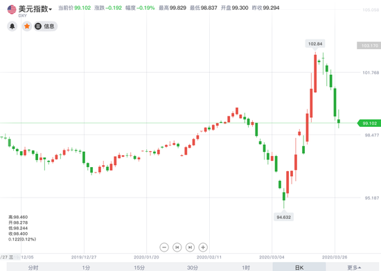 此前两周美股接连大跌的时候,衡量一篮子主要货币对美元的汇率累计飙升了8.91%;而在过去三天股市飙升的同时,美指从创纪录高位下跌了约3.78%,势将创下2009年以来最大单周跌幅。