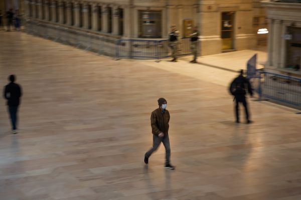 3月26日,一名戴口罩的男子走在纽约曼哈顿中央车站内。新华社发