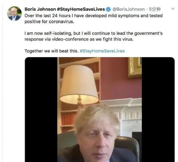 据BBC报道,英国首相约翰逊新冠病毒检测结果呈阳性,但症状轻微,目前正自我隔离。唐宁街10号发言人表示,约翰逊的症状很轻微,在自我隔离期间,约翰逊将继续领导英国政府抗击新冠病毒。