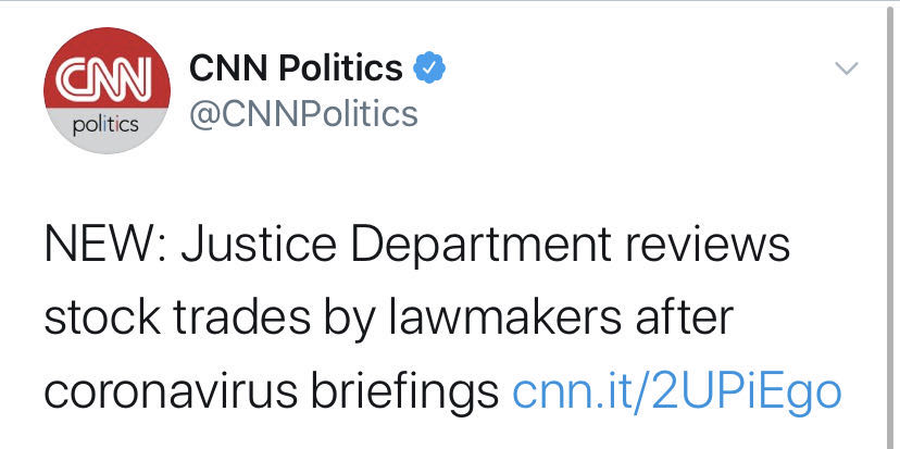据CNN报道,美国司法部对议员在疫情简报会后进行的股票交易展开调查。