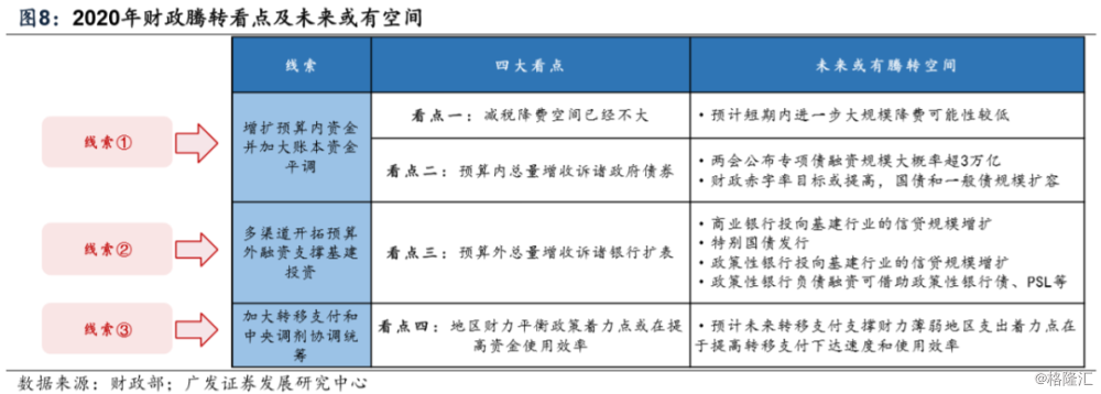 第五,2020年财政腾转扩张的已有政策及未来空间。