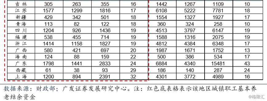 2020年社保基金需要更大中央调剂金规模来平衡地区分化。2018年中央调金制度以来,广东、北京、浙江、江苏、上海、福建和山东这7个东部沿海省市是主要的资金输出方(体现为下表中的中央调剂金净收入小于零),而辽宁、黑龙江、四川、吉林、湖北等中西部和东北部地区为主要的中央调剂金资金输入地区。此外,以社保结余资金可支付月份来度量地区社保结余“财力”,基本上可支付月份越高,该地区社保的中央调剂金上缴规模大于下拨规模,即为该地将资金净输出,与之对应,中央调剂金制度下其他地区资金净输入。
