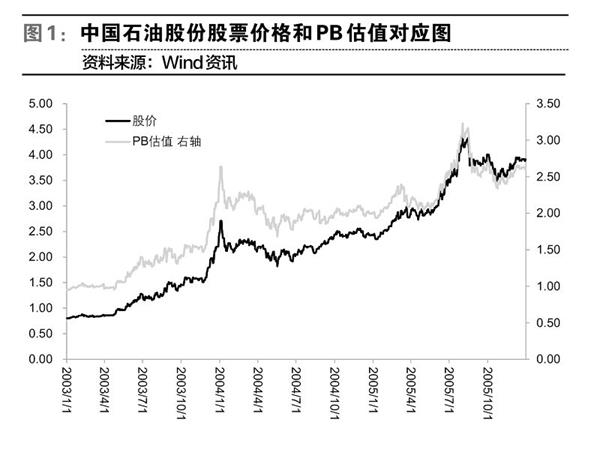 以中国石油股份(00857.HK)为例,沃伦·巴菲特先生在2003年左右发现了这家被市场低估的公司。在2003年1月1日时,中国石油股份的PB估值只有0.95倍(Wind资讯计算的数据,下同),股价只有0.80港元(2020年3月17日Wind资讯计算的前复权股票价格,下同)。