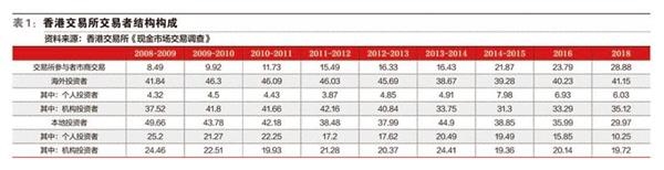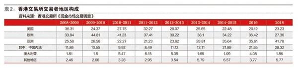 但是,即使是当前在港股市场占相对主导地位的海外投资者,其构成也是非常复杂的。根据港交所的数据,在2018年,海外投资者中有23.23%来自美国,27.36%来自欧洲,28.32%来自中国大陆,13.46%来自亚洲其他地区,剩下的7.63%来自其他地区。