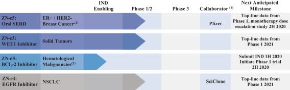 约500万美元用于推进ZN-e4的临床开发,包括完成我们正在进行的1/2期临床试验的第一阶段部分,该阶段针对具有激活性EGFR突变的晚期NSCLC患者;和