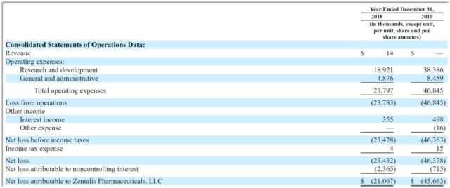 截至2019年12月31日,公司拥有6720万美元现金和1910万美元总负债,以下是该公司过去两年的财务业绩(经PCAOB审核):