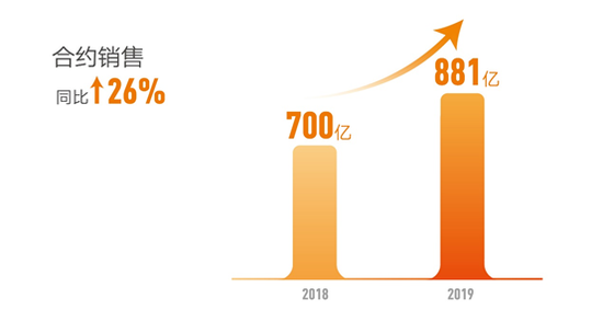 2019年,在复杂多变的市场及多元的竞争格局中,佳兆业坚守主航道,销售规模再创新高。合约销售金额增长26%,达到881亿元人民币(单位下同),超额完成全年目标,销售增速领先TOP30房企平均水平。根据克而瑞、中国指数研究院等权威机构权益金额排名,佳兆业已成功跻身全国销售30强。