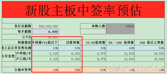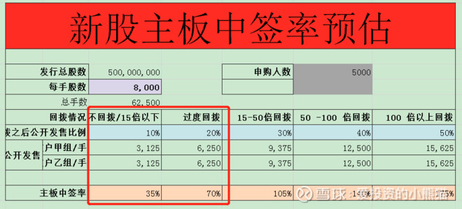 超额倍数在15倍以下或者未足额,一手嗯中签率预计在35%左右;