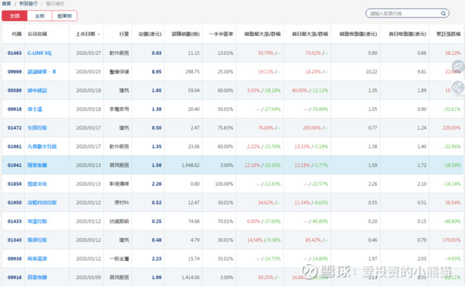因为受到疫情以及石油价格战的影响,最近全球股市动荡不安。大盘很不稳定。导致很多新股都推迟发行。然后看最近的这些新股,前段时间虽然暗盘很多都是下跌的,不过首日也都涨起来了,倒是有点意料之外,最近的两个新股也都是涨的暗盘和首日都没跌,所以其实最近新股的行情还算是一道亮丽的风景线,最近上市的13个新股里面,只有三个,盘中从来没有翻红过,其他的全部都有大涨或者是红盘,都说最近行情不好,其实港股打新这里,行情是挺好的。