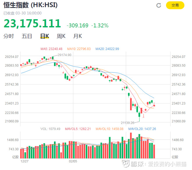 然后再去反观二级市场的恒生指数,最近已经有反弹的势头起来了,市场明显开始有点混乱的迹象了,至少止跌了。