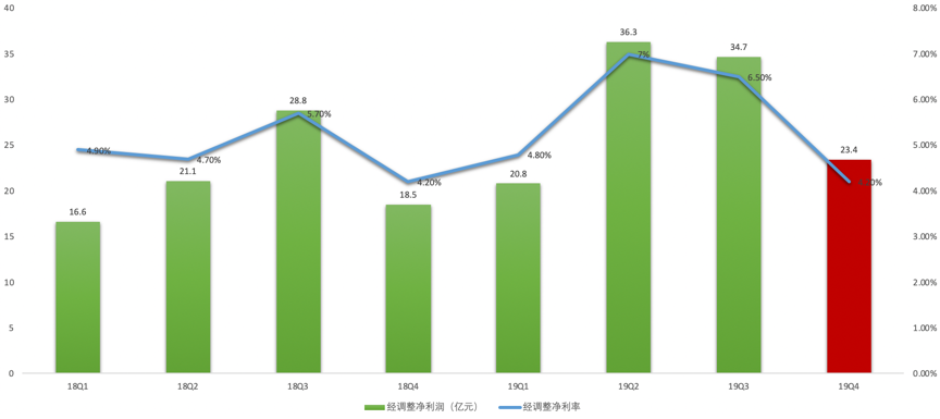 Q4单季度,小米经调整净利润为23.4亿元,同比增长26.5%,环比减少32.5%,但仍超市场一致预期。此外,经调整净利率为4.2%,同比持平,环比下降2.3百分点。