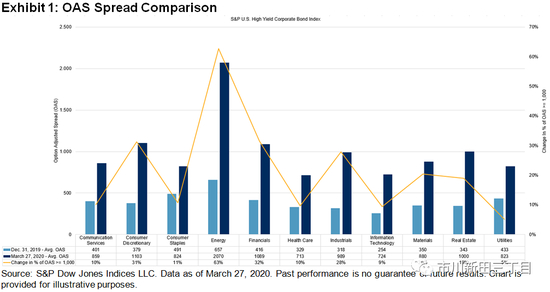 标准普尔美国投资级公司债指数中7000多只成分券的经期权调整后的信用利差在3月初触及到568个基点的高位,其中有99只成分券的经期权调整后的信用利差超过了1000个基点。