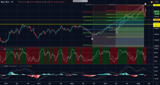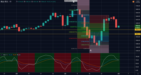 下方较重要支撑在1550~1560区域,失守此区域则有望再次跌至1450一线。不过,如涨破1650将带来更多买盘需求,后市或继续冲击1700关口。1650为0.786XA水平,X为3月9日高点1703.6,A为3月16日低点1451。