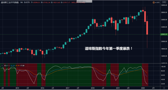 2020年第一季度,道琼斯工业指数累计跌23.2%,创下自1987年以来最高单季度跌幅,并创有史以来最高的第一季度跌幅;