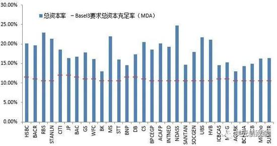 第一,全球重要性银行当前的资本充足率一般都在10%以上,距离监管者要求的最低核心资本冲率仍有较大的空间。
