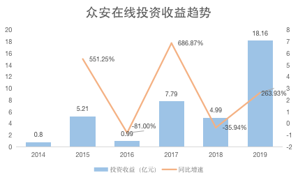 貌似众安在线的盈利能力正在改善,事实上2019年的盈利大部分都来自于投资收益。受益于A股市场的优异表现,其2019年投资收益为18.155亿元,同比增长264%,总投资收益率达到9.3%。