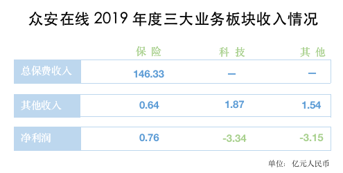 三大主营业务板块都面临盈利压力,科技和其他业务板块还得依靠保险输血,众安在线陷入了保费规模不断增长、公司却不盈利的状况。