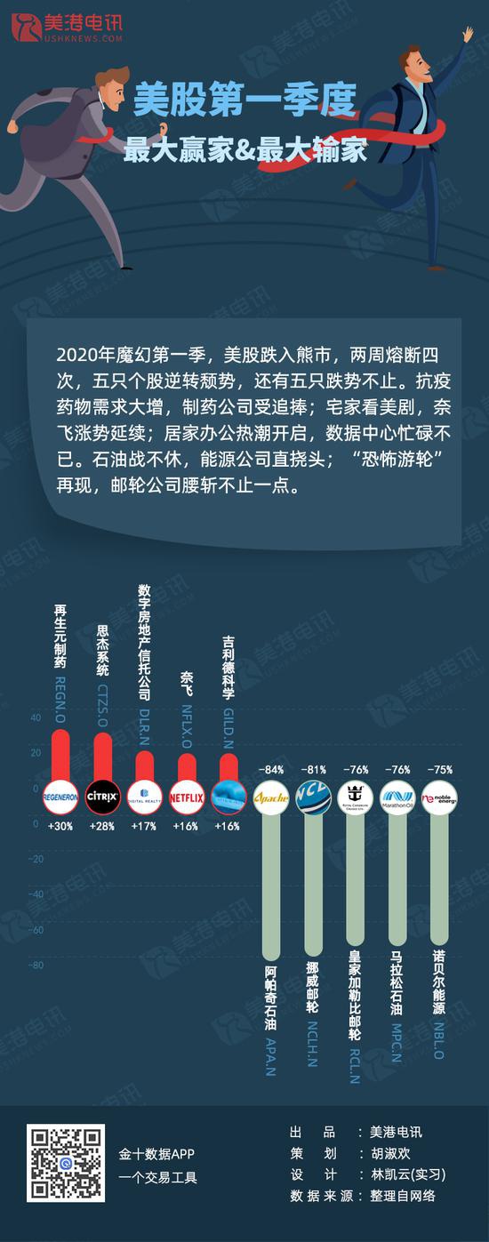 2020年魔幻第一季,美股跌入熊市,两周熔断四次,五只个股逆转颓势,还有五只跌势不止。一图带你看懂美股第一季度最大赢家和输家榜单。