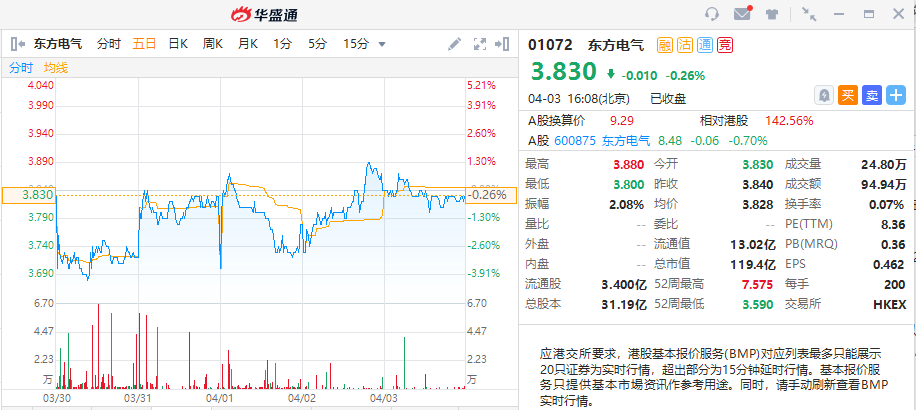 目前国内煤电及水电需求减少,而核电、燃机稳中略升。但风电需求最为强劲。集团重点市场,紧抓机遇,全年实现订单401.84亿元人民币。大力推进高效清洁能源及可再生能源,合供占订单过半。可于现价3.83元附近吸纳,中长线可见5.40元,跌穿3.30元止蚀。