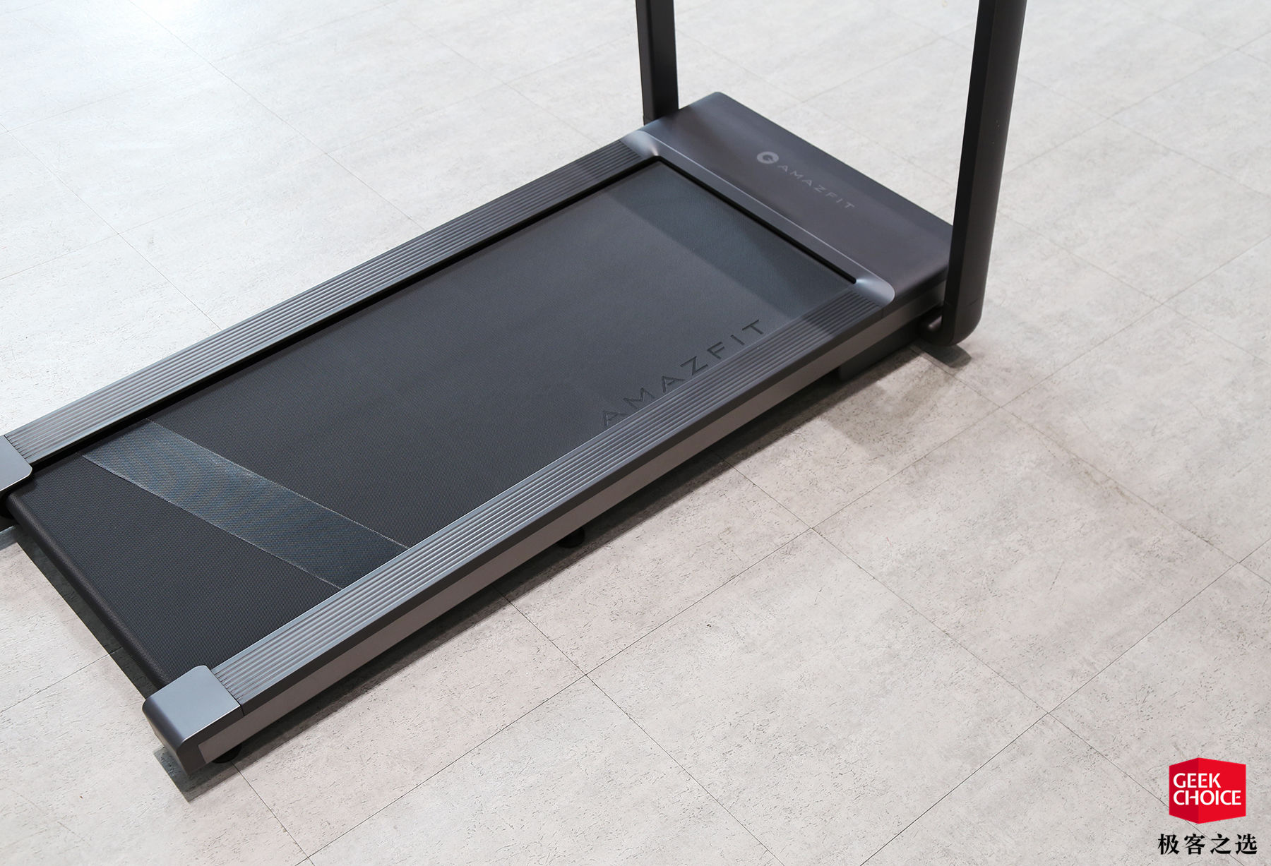 至于跑带部分,Amazfit AirRun 拥有 500mm 纯粹跑带宽度以及 1300mm 的跑带长度,并且采用了下沉式的马达设计来进一步增加有效跑步范围。另外,跑步机还做了防滑耐磨的钻石纹跑带和软胶边条,有着不错脚感表现的同时也兼顾到了安全性。
