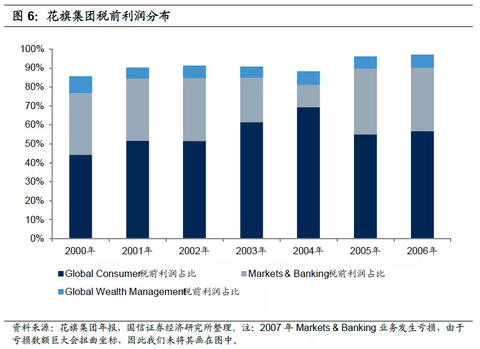 花旗集团的分部信息只能回溯到2000年。其主要业务板块名称在样本区间内几经变化,但主要内容没有发生太大调整。后面我们在提到业务板块时,均按2007年最新名称划分。