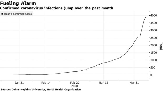 东京过去一周新冠感染病例增加逾一倍,达到约1,200例,成为日本确诊病例最多的地区,其中有超过80例是周二新增报告。截至周一,日本全国新冠病毒感染人数超过4,000人,死亡93人。