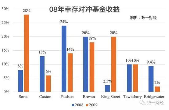(08年“幸存”的几家正收益的基金,桥水并不是做的最好的,但也很不容易)
