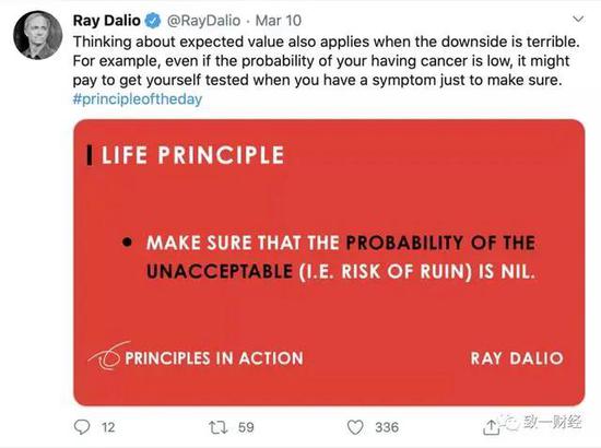 第一个问题没有正确答案,只能捕风捉影的在达里奥的言论中寻找一丝踪迹:3月10日在推特上发表的每日原则是“保证不可接受的事件发生的概率是零”。