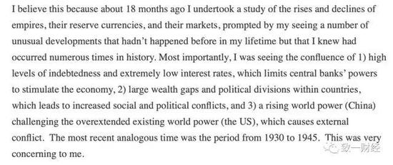 其实不只是这一篇,上个月达里奥连发四篇文章都阐述了类似观点——“桥水很早就进行了相关研究,我们一直认为当下经济形势很危险。”