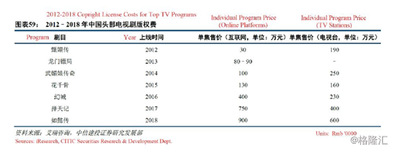 一般来说,互联网的版权费用会比电视台要高,这个倍数在2018年是1.5倍。