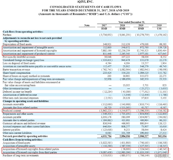 在计算经营性现金流的时候,爱奇艺跟奈飞的做法完全不一样。奈飞将“购买版权”的现金支出记在经营性现金流上,而爱奇艺则将这部分现金支出记录在投资性现金流上。