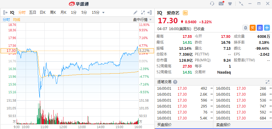 受此消息影响,爱奇艺股价盘中一度跳水10%。