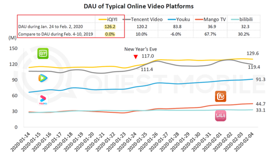 QuestMobile的报告显示,2020年中国农历新年前10天,爱奇艺的平均移动日活只有1.262亿,而爱奇艺宣称的平均移动日活为1.8亿。此外,QuestMobile报告显示,2019年至2020年中国农历新年期间,爱奇艺的日活并没有增长: