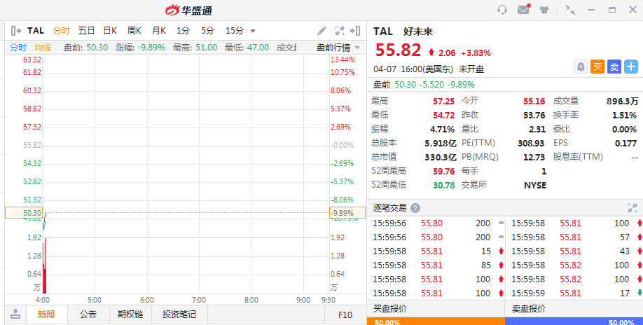 香港万得通讯社报道,好未来盘前跌10%,此前自曝内部审计发现财务问题,并称造假员工已被依法拘留。