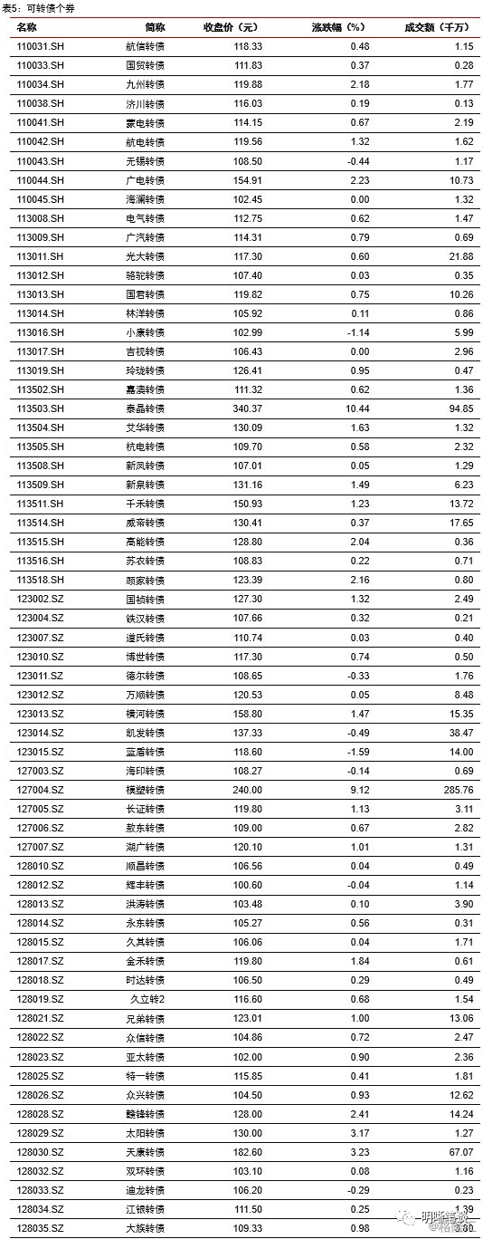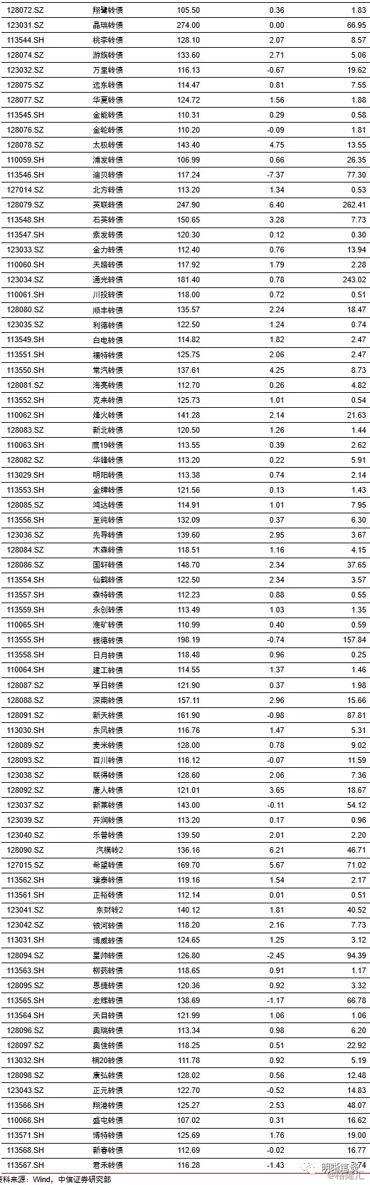 除去短期爆炒的标的,转债市场的驱动力核心更看重于正股的后续表现。当前转债市场体现更为明显资产配置的特征,自上而下去寻找未来正股市场配置的逻辑。对于转债市场的指标,投资者可能需要略微放宽对溢价率水平的纠结,更看重绝对价格水平回落带来的空间和价值。