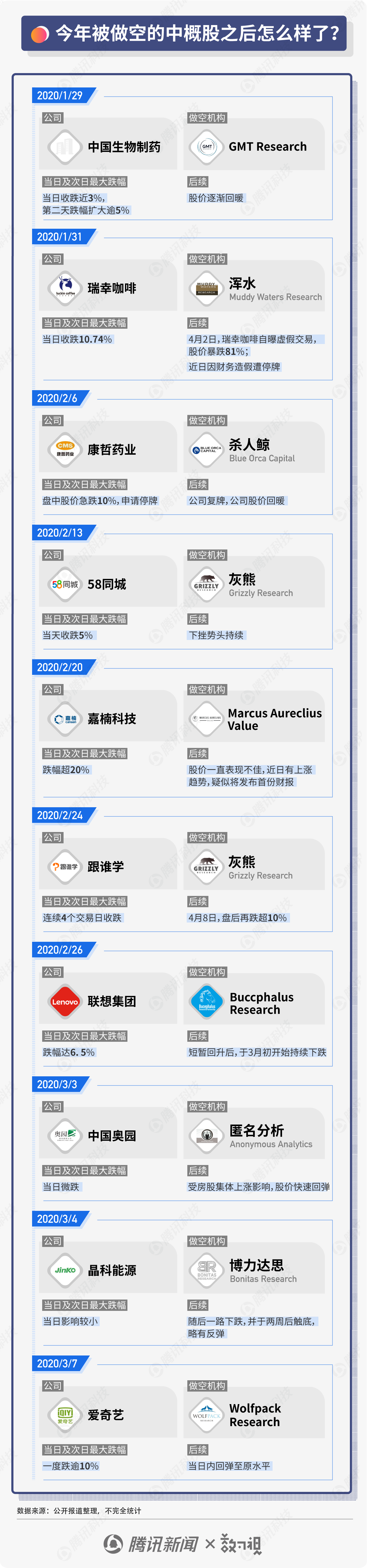 做空后股票的下跌属于正常情况,大部分都会在几天或一周的时间内还原。在近期遭到做空的10只中概股中,8只均有不同幅度的回升,大多回升至做空前的水平。