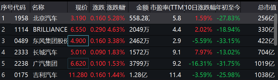 新浪港股讯 汽车股在香港集体走高,其中,北京汽车涨5.26%,华晨宝马涨4.63%,东风集团涨3.38%,长城汽车涨1.83%,广汽集团、吉利汽车涨逾1%。