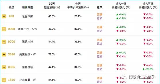 周三恒指波幅指数(VHSI)收报32.53,上涨7.18%。个股权证方面,个股的相关认购证涨跌互现,瑞声科技大幅下调60.8%,认沽证方面,长江和下调8%。