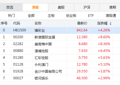 4月9日,濠赌股持续走强,新濠国际发展(0200.HK)领涨超8%,美高梅中国(2282.HK)涨8.36%,澳博控股(0880.HK)涨6.45%,永利澳门、银娱和金沙中国涨幅也都超过3%。