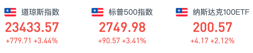 当地时间周三,在桑德斯退选以及美国疫情前景好转的刺激下,美国三大股指涨近3%。截至周三收盘,标普500指数涨3.41%,报2749.98点;纳斯达克指数涨2.58%,报8090.90点;道琼斯指数涨3.44%,涨近800点报23433.57点。