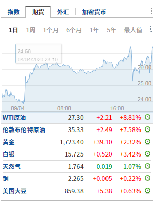 有欧佩克消息人士称沙特和俄罗斯就深度减产达成协议,报价显示,WTI原油日内一度大涨超10%,布伦特原油涨幅超7.1%。消息人士称,欧佩克+以及其他产油国将讨论减产高达2000万桶/日。