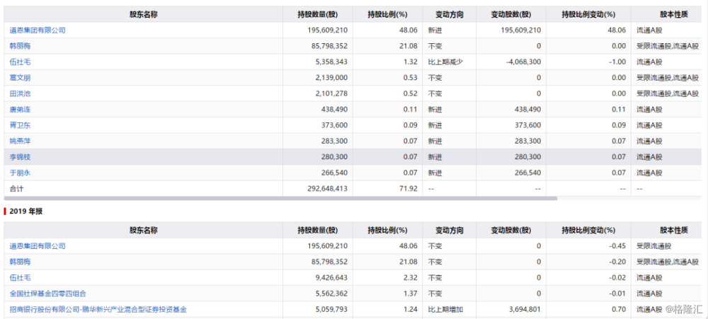 对比道恩股份两个报告期的股东数据,可发现其机构股东在第一季已悉数离场。而仍在坚守的韩丽梅为公司董事长于晓宁的配偶,两人直接持有与通过道恩集团有限公司共持有道恩股份近70%股权。