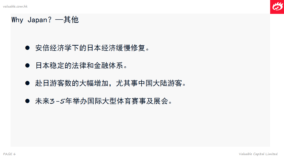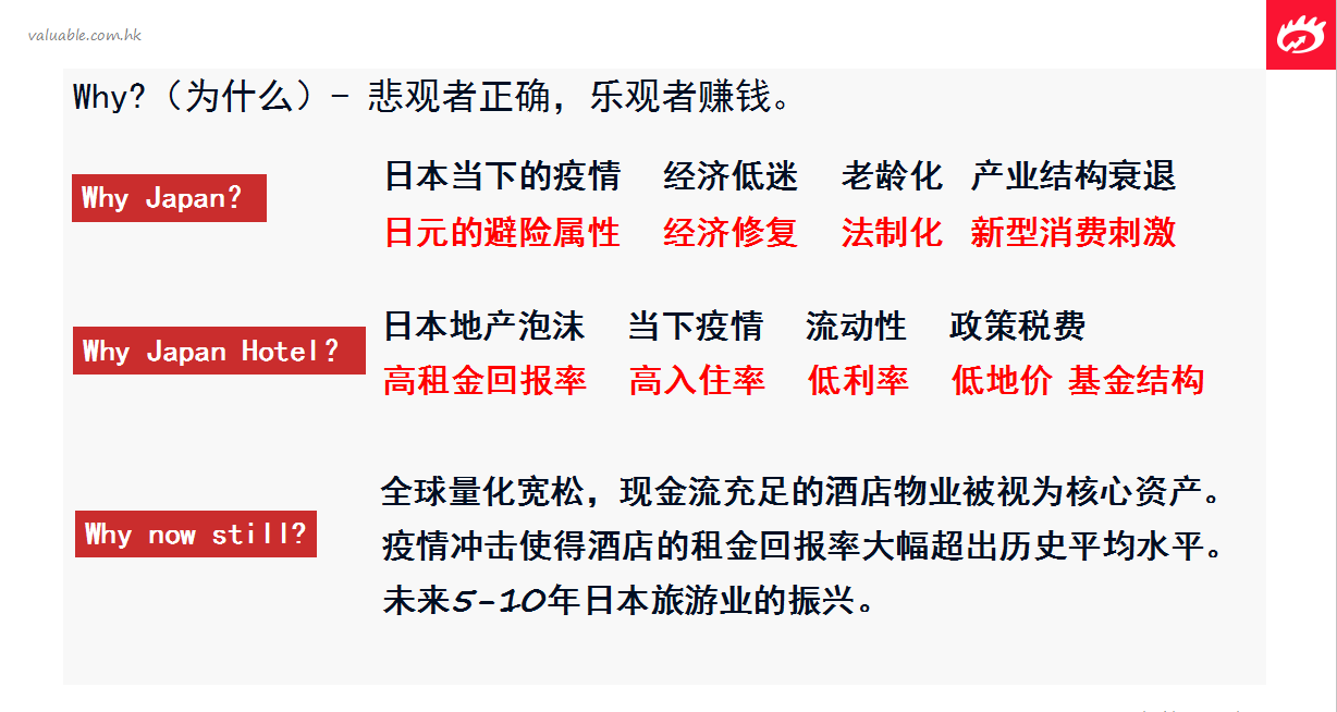 接下来,我和Dennis会分别介绍日本酒店的投资逻辑、及日本核心区域酒店的最新投资数据。