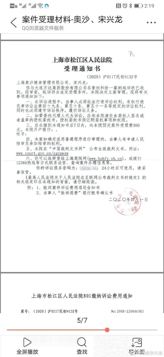 据宋兴龙微博置顶文章《上海五位法学教授联名企信“松江万达打砸抢事件”》所述,从2013年底起,宋兴龙旗下的奥沙健身与松江万达形成租赁关系,2015年8月因万达百货倒闭双方发生经济纠纷,并于2016年在北京仲裁。但在仲裁进行之际,2016年11月22日深夜11点左右,万达方面组织上百人把六楼奥沙公司的大门砸开、毁掉室内所有监控设备及监控硬盘,将里面的财物采用搬、砸、锯及抢的方式洗劫一空,会所内数千万元的翡翠珠宝不翼而飞。