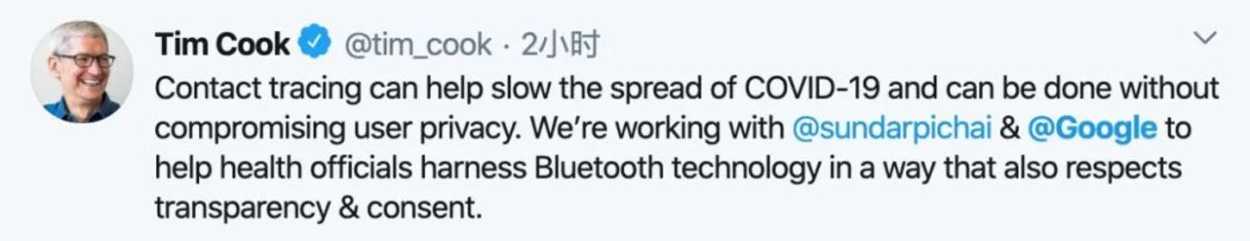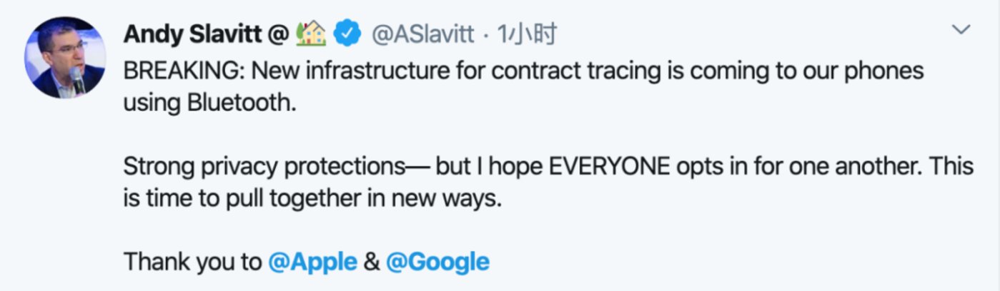 追踪新冠接触者的新基础设施正在通过蓝牙进入我们的手机。它有强大的隐私保护——但是我希望所有人都选择加入,人人为我,我为人人。现在到了以新形式团结的时刻了。向苹果和谷歌致谢。